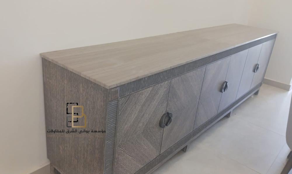 هل تبحث عن بوفية طعام يجمع بين الأناقة والفخامة والعملية؟ احصل على بوفية الطعام بسطح من الرخام الطبيعي ودولاب من الخشب الآن! اتصل بنا لتحديد التصميم المثالي الذي يناسب ذوقك واحتياجاتك. اطلب الآن واستمتع بتجربة تسوق استثنائية!