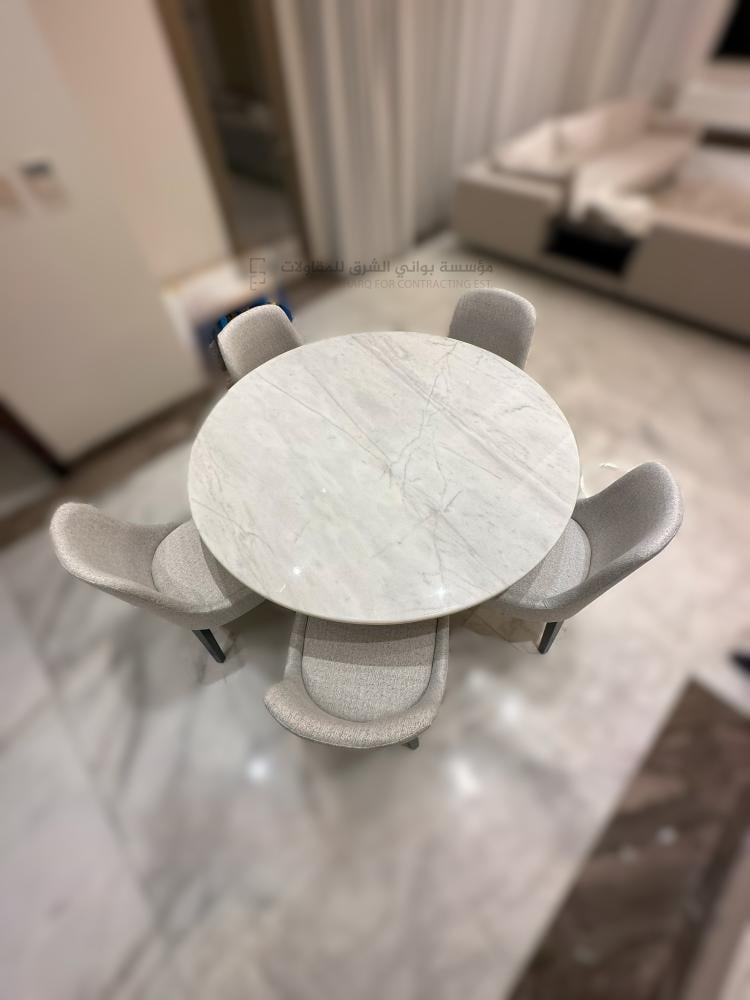 طاولة الطعام هذه هي مزيج رائع بين الفخامة والعصرية، حيث يأتي سطحها من أجود أنواع الرخام الطبيعي مع قواعد مصنوعة من الخشب الفضي الذي يضيف لمسة عصرية وأنيقة. التصميم قابل للتخصيص بالكامل، مما يتيح لك اختيار نوع الرخام، المقاسات، الحواف، وحتى تصميم القواعد بما يتناسب مع ديكور منزلك.