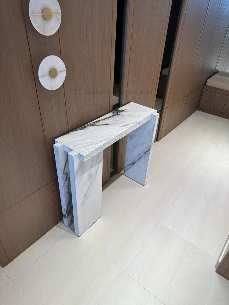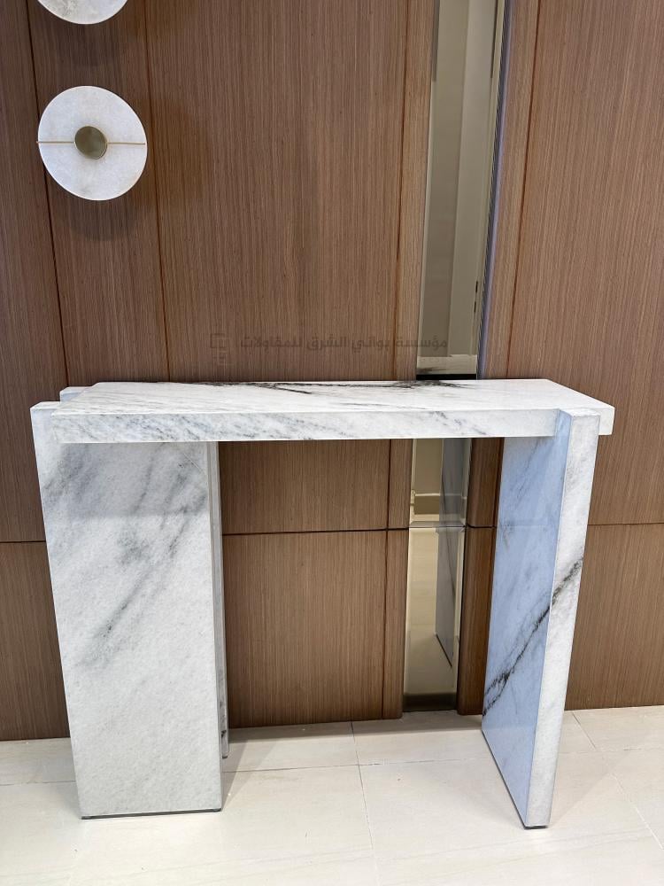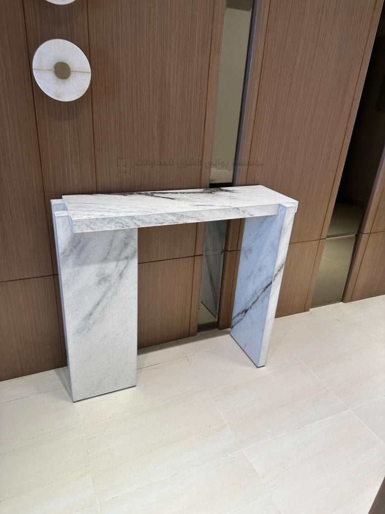 A console that embodies natural luxury with an elegant modern design, made of natural Vietnamese marble that is characterized by its delicate veins and warm shades that add warmth and beauty to any space. Its carefully polished surface and sturdy base strike a balance between elegance and functionality, making an exceptional addition to both classic and modern décor.